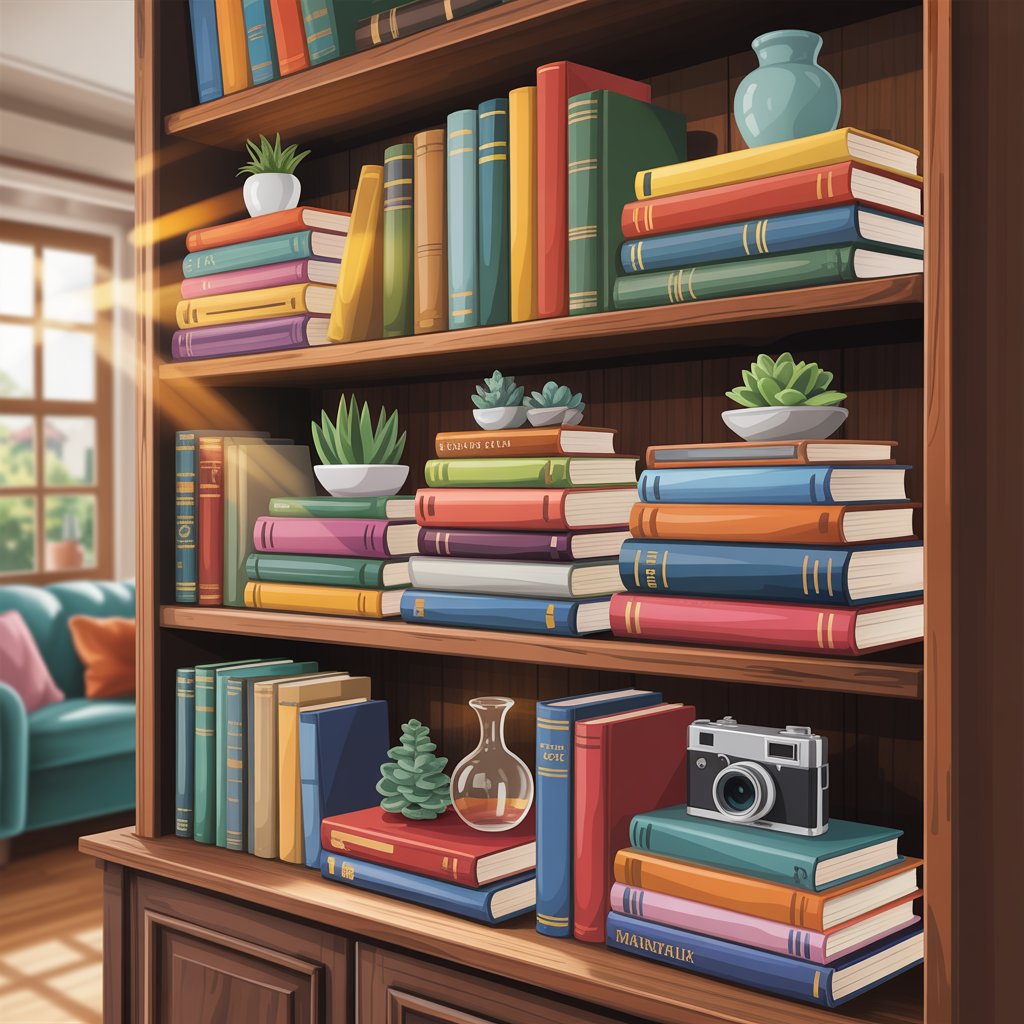 Pro Tip: Use books as pedestals—stack two horizontally and place a small plant on top to elevate decor without extra shelf space.