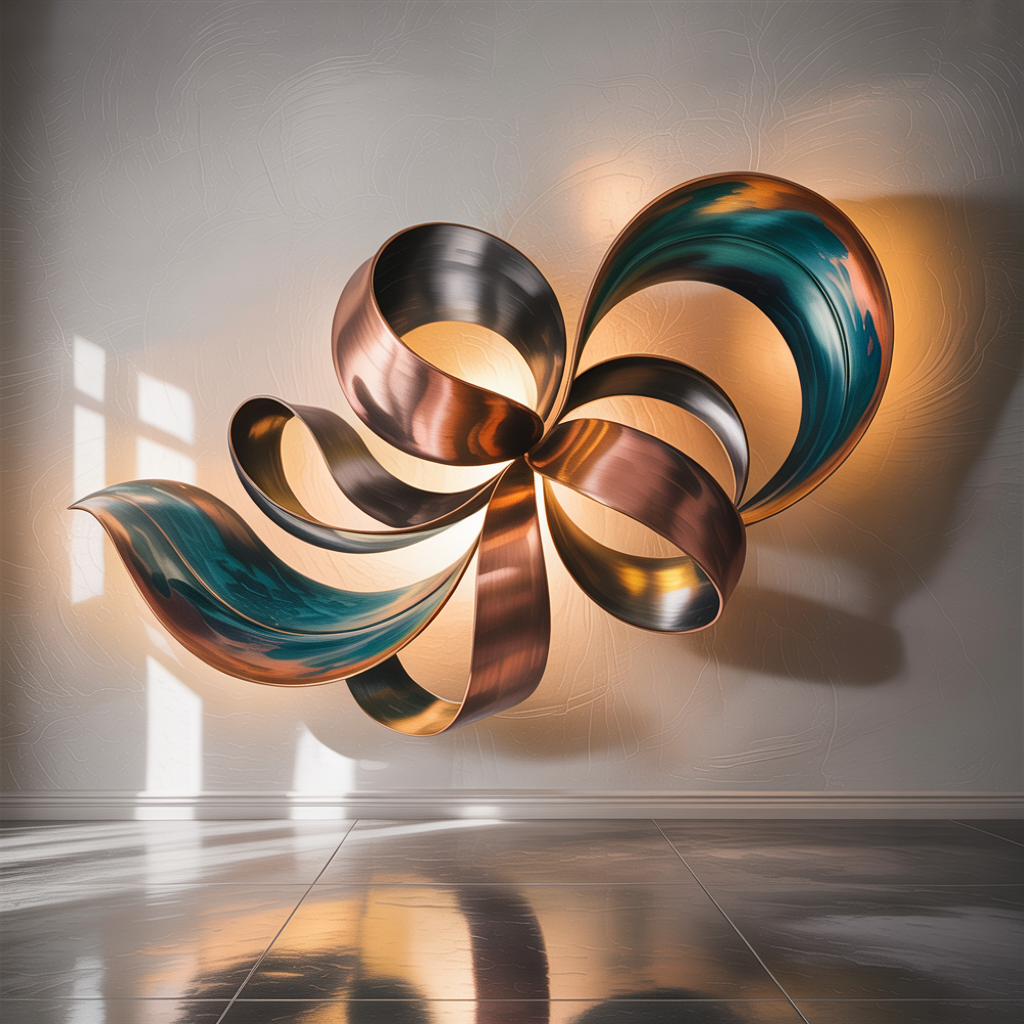 “Abstract metal art transforms sterile walls into conversation starters. The interplay of light on textured surfaces creates ever-changing moods throughout the day.“